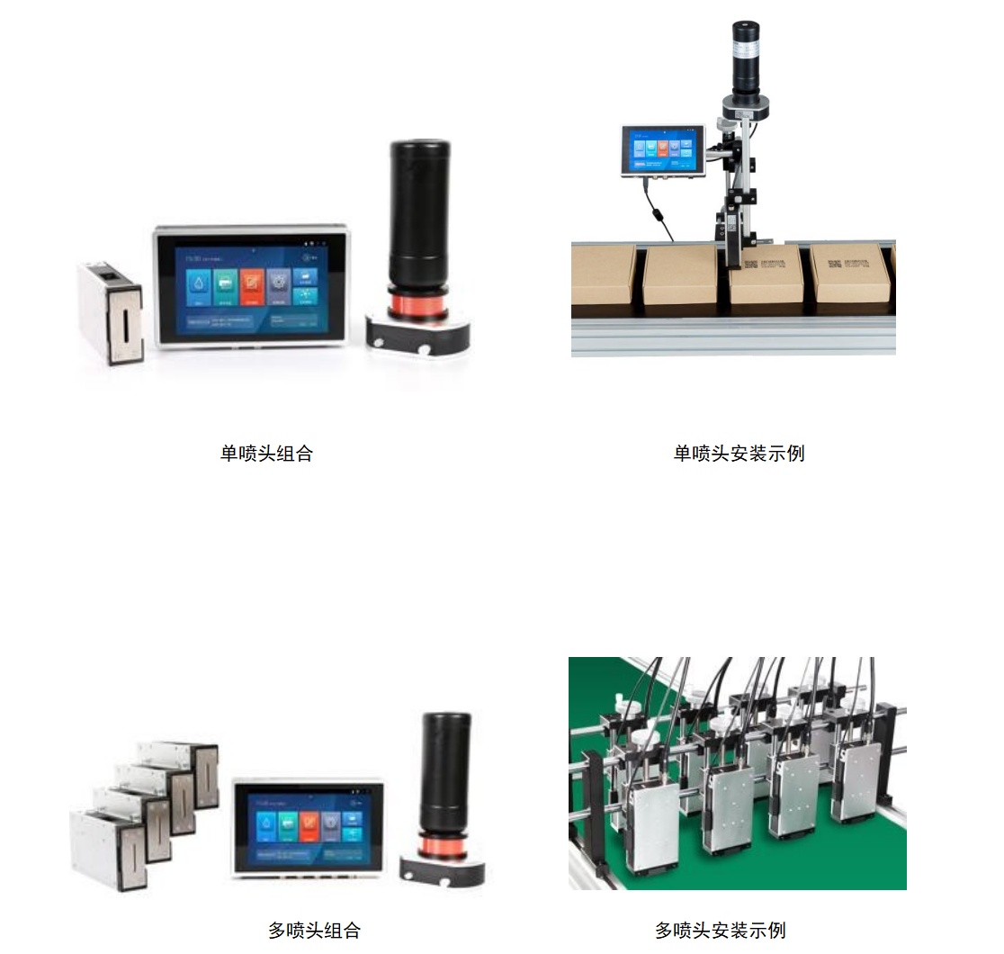 喷印内容:印刷生产日期、批号、商标图形、中英文编号、一维条码、二维码、动态数据、数据库连接等